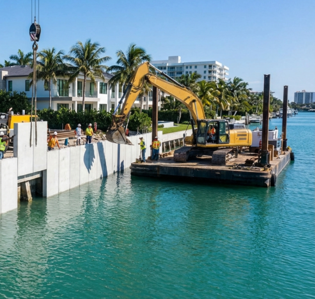A properly constructed seawall protects against high tides and storm surges, safeguarding your property investment.